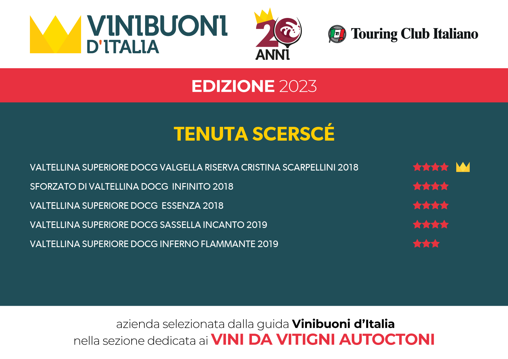 • CRISTINA SCARPELLINI Valtellina Superiore Valgella Riserva DOCG 2018: 4 stelle e Corona