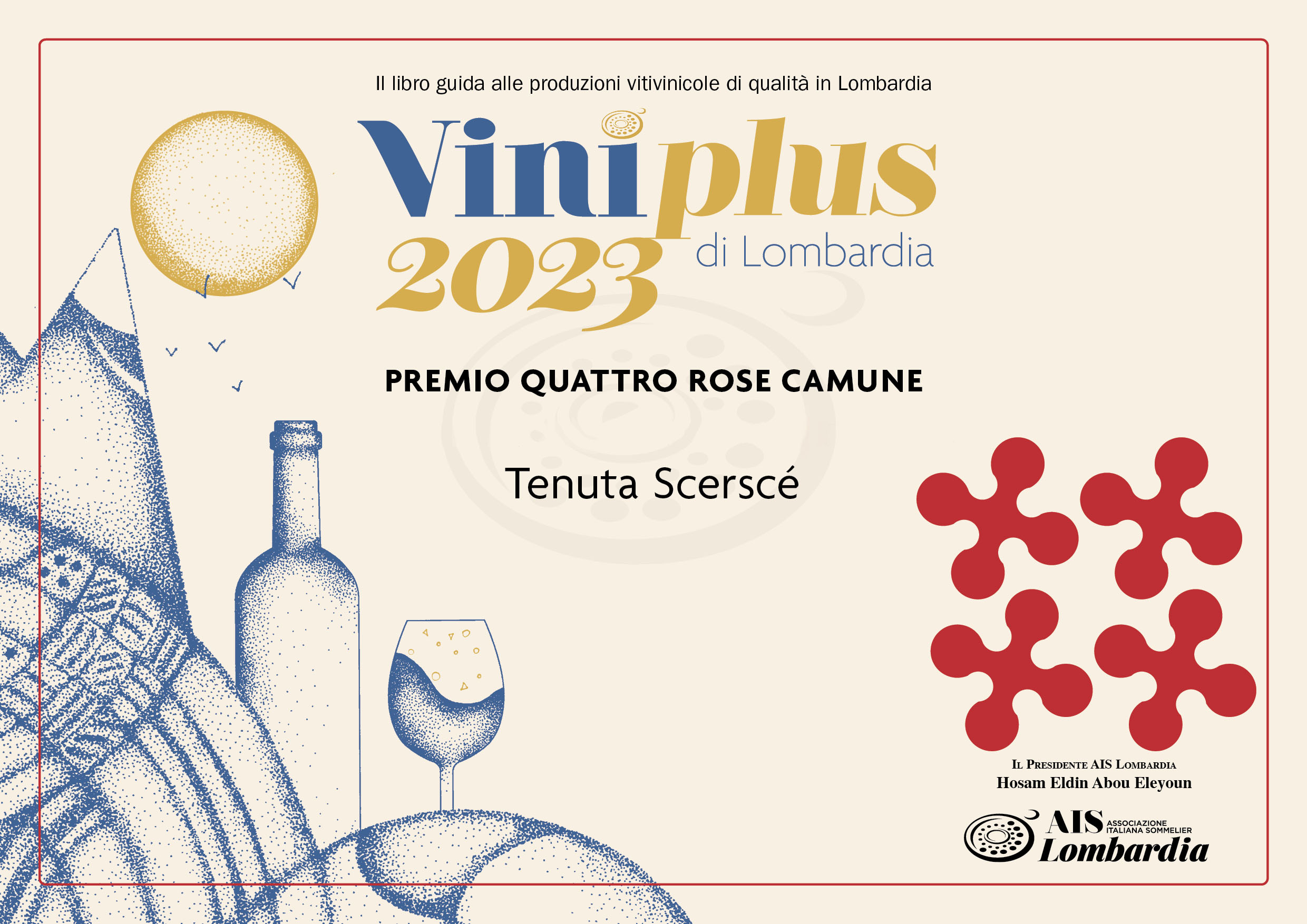 INCANTO Valtellina Superiore Sassella DOCG 2019 e ESSENZA Valtellina Superiore DOCG 2018 hanno ricevuto le 4 Rose Camune da Viniplus 2023, la guida dell’Associazione Italiana Sommelier Lombardia.
